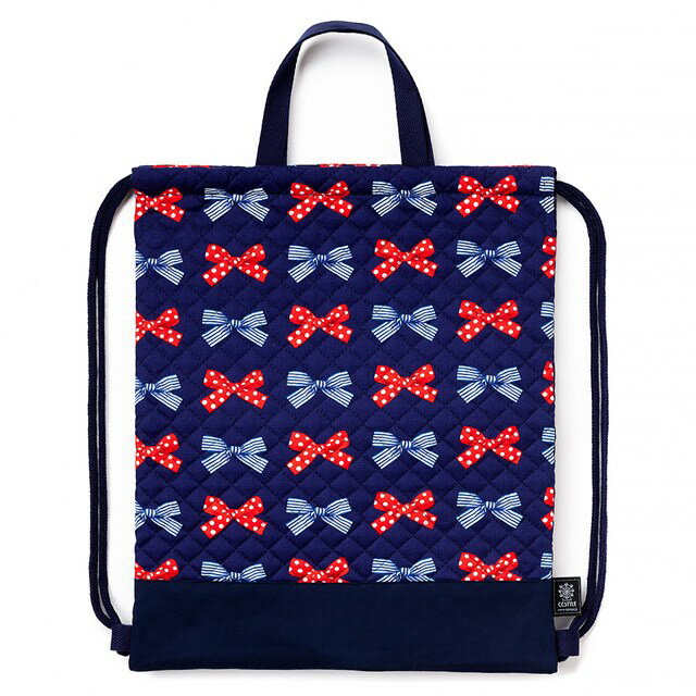 商品名ナップサック キルティング ポルカドットとストライプのフレンチリボン(ネイビー)商品の特長1.リュックにも手提げバッグにもなる巾着バッグ持ち手付きなので、手提げとしても使える便利な2WAY仕様です。