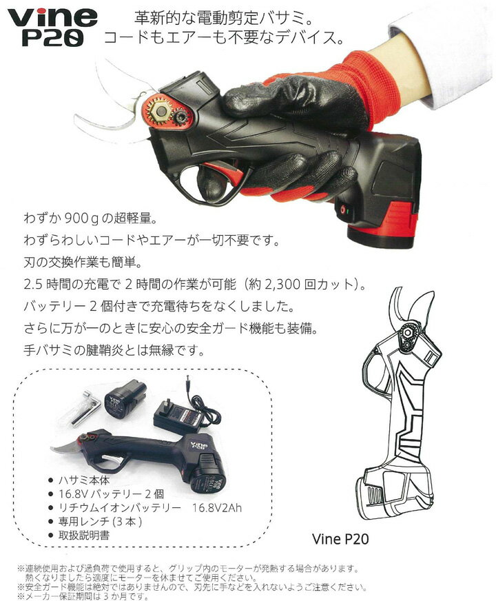 電動 剪定バサミ Vine P20 保証3カ月 和光 WAKO 剪定鋏 枝切りバサミ 枝きりはさみ 電動ハサミ 電動はさみ 電動剪定鋏