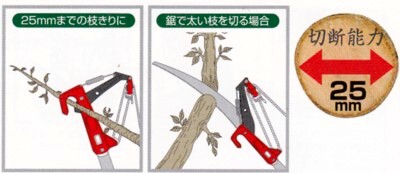 ●女性にもラクに使える超軽量アルミ合金 ●頭部は軽くて、強靭なグラスファイバー製 ●専用ノコギリ刃を使えば太い枝も簡単に切断できます。