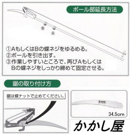 ロープを引いてラクに枝切りができます。日本製「ロープ式高枝切鋏」専用ノコギリ刃付全長最大3.5mタイプ